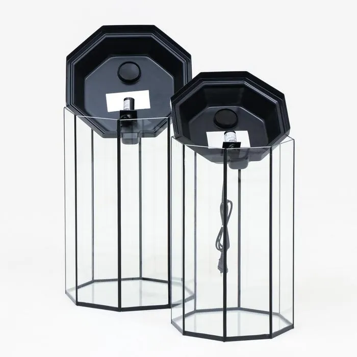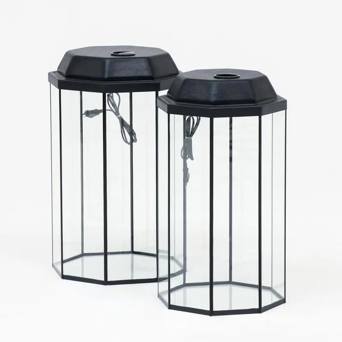 Комплект аквариумов "Матрёшка" с крышками Восьмигранные, изготовлен из прочного стекла, благодаря евро кромке имеет высокую защиту от трещин, сколов, что повышает степень безопасности при эксплуатации. Также крышка надежно защищает аквариум от пыли, оснащена патроном под лампу Е14, светодиодной лампой Е14, 7 ватт с защитным плафоном, что позволяет создавать оптимальное освещение для растительности и рыбок, наблюдать за жизнью подводного мира можно даже ночью. Этот аквариум дает полный обзор из-за своих изгибов, отличный выбор для любителей водных растений и животных. Указаны номинальные объёмы аквариумов.