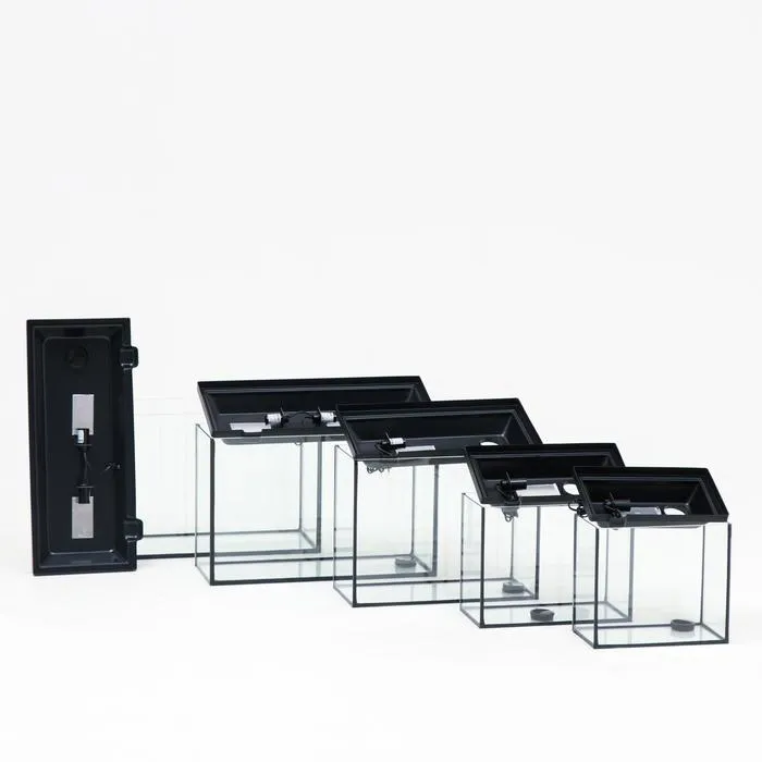 Комплект аквариумов "Матрёшка" Прямоугольный Атолл, выполнены из высококачественного стекла, благодаря евро кромке имеет высокую защиту от трещин, сколов, что повышает степень безопасности при эксплуатации. Также крышка надежно защищает аквариум от пыли и оснащена патроном Е14 под лампу. Основным преимуществом аквариума является его простота в установке и уходе. Он легко чистится и моется и может быть установлен в любом месте дома или офиса. Указан номинальный объём аквариума.