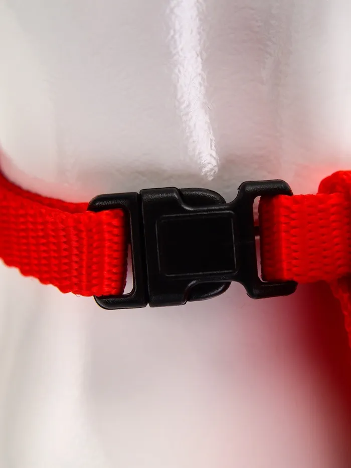 Оснащен пластиковыми «замочками», для быстрого надевания, кроме того такие зажимы не будут зажевывать шерсть питомца.