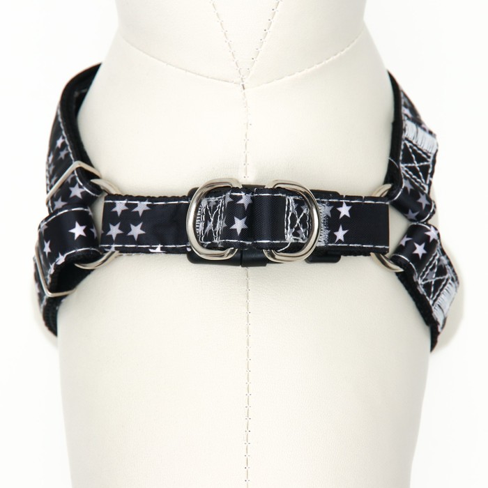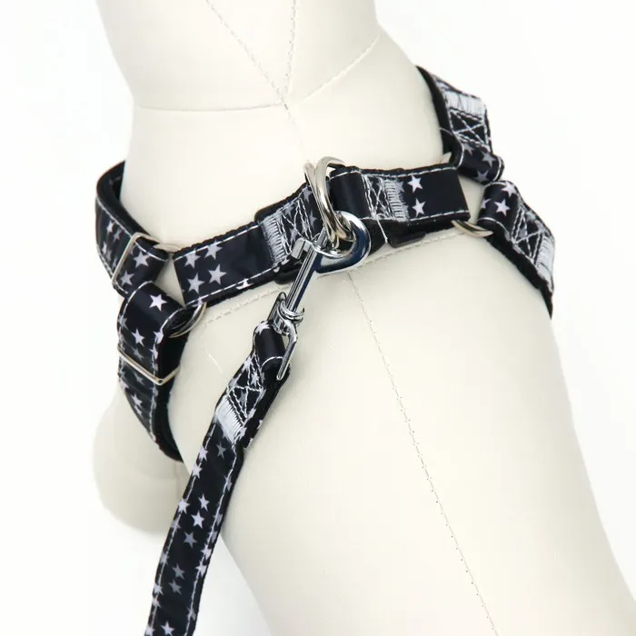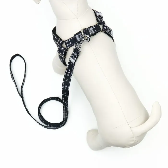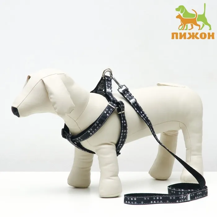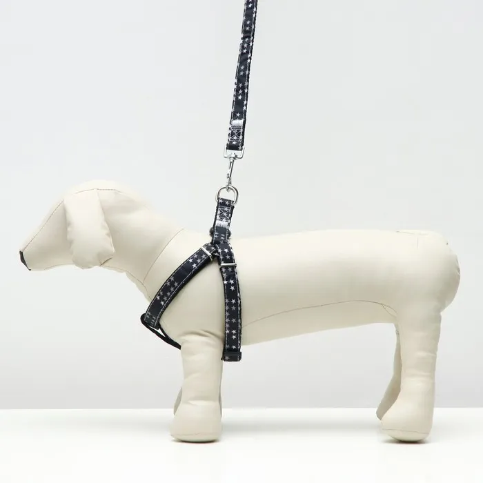 Подойдёт для собачек мелких и средних пород. В комплект входит двухслойная шлейка и поводок, оснащен качественной металлической фурнитурой.