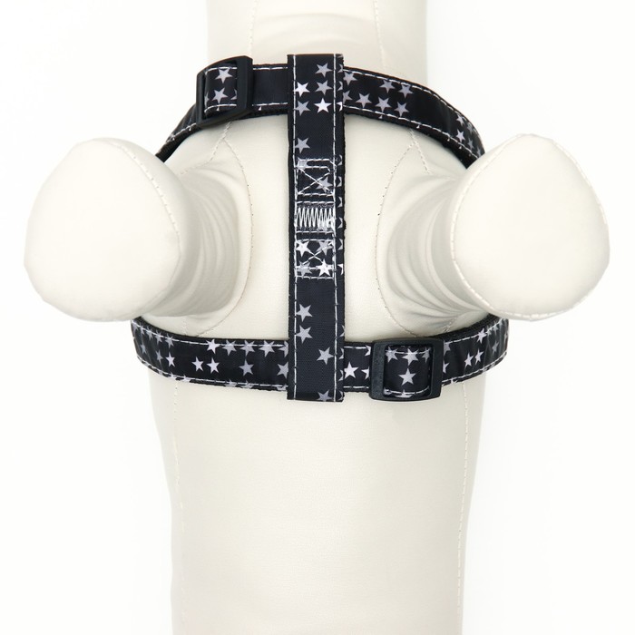 Она оснащена пластиковыми «замочками», которые позволят вам быстро снимать и надевать ее на питомца, вы сможете без труда отрегулировать шлейку по фигуре питомца.