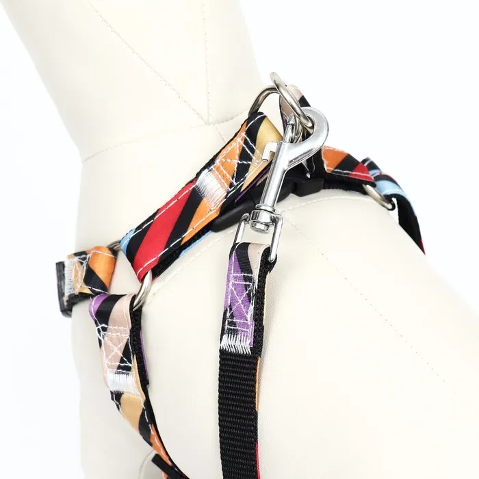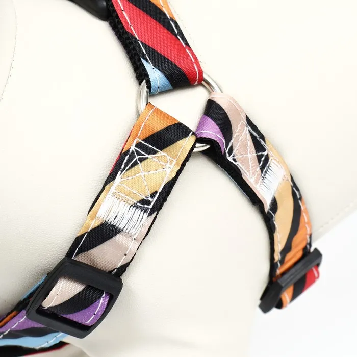 Незаменимый, яркий аксессуар для совместных прогулок подарит комфорт вам и вашему питомцу.Шлейка подходит для собак мелких и средних пород.Отличный выбор для вашего четвероногого друга, который удобен и практичен в использовании.В шлейке встроенная качественная металлическая фурнитура, которая прослужит вам длительный период времени.Шлейка имеет легкий и быстрый способ застежки, который располагается на спинке, рядом с колечком для поводка. Застёжка позволит вам быстро снимать и надевать шлейку на вашего питомца. А также вы без труда сможете настроить шлеечку под фигуру вашего любимца.Разноцветный дизайн амуниции будет радовать глаз и поднимать вам настроение.