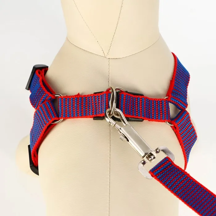 Комплект амуниции рельефный, 2 см, поводок 120 см, красно-синий — Характеристики