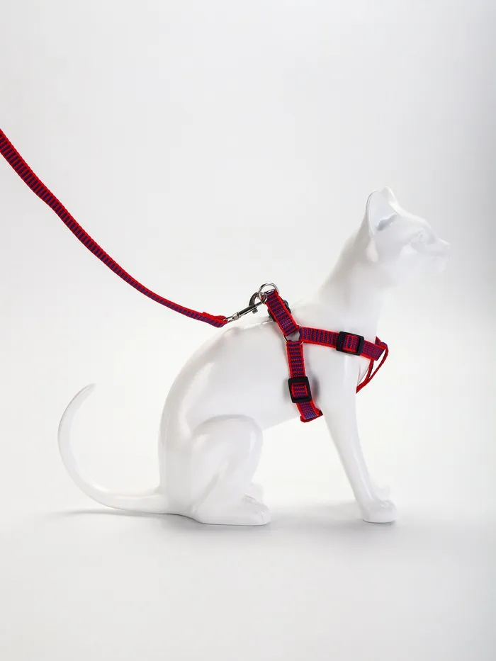 Поводок крепится к металлическому кольцу карабином. На спине амуниция фиксируется застежкой. Шлейка исключит побег животного, если правильно подобрать размер и отрегулировать ремни.