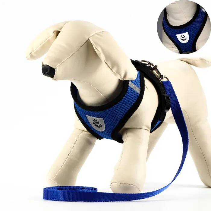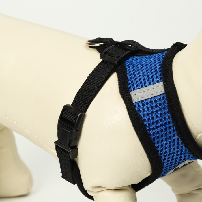 Комплект амуниции с мягкой шлейкой и светоотражающей нашивкой, M, ОШ 26, ОГ 36-44, синий — Характеристики