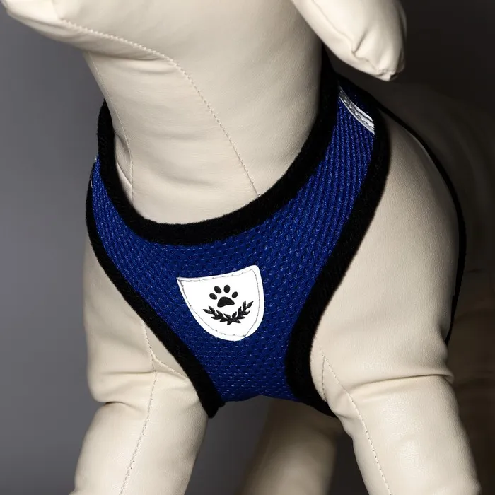 Комплект амуниции с мягкой шлейкой и светоотражающей нашивкой, M, ОШ 26, ОГ 36-44, синий