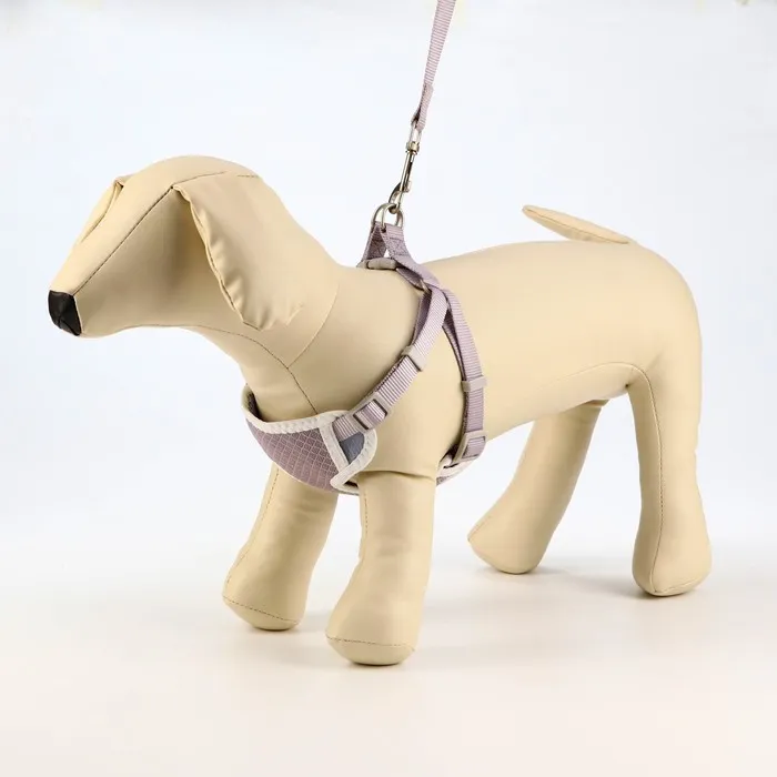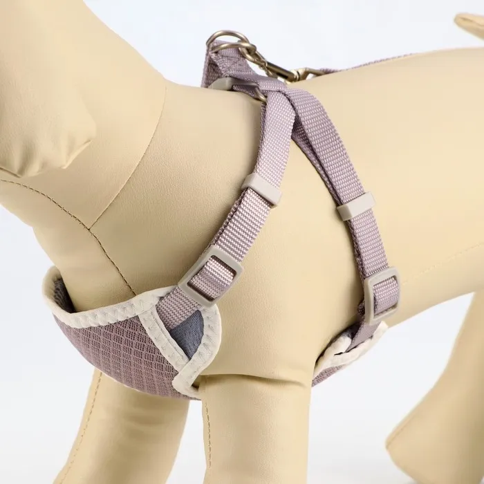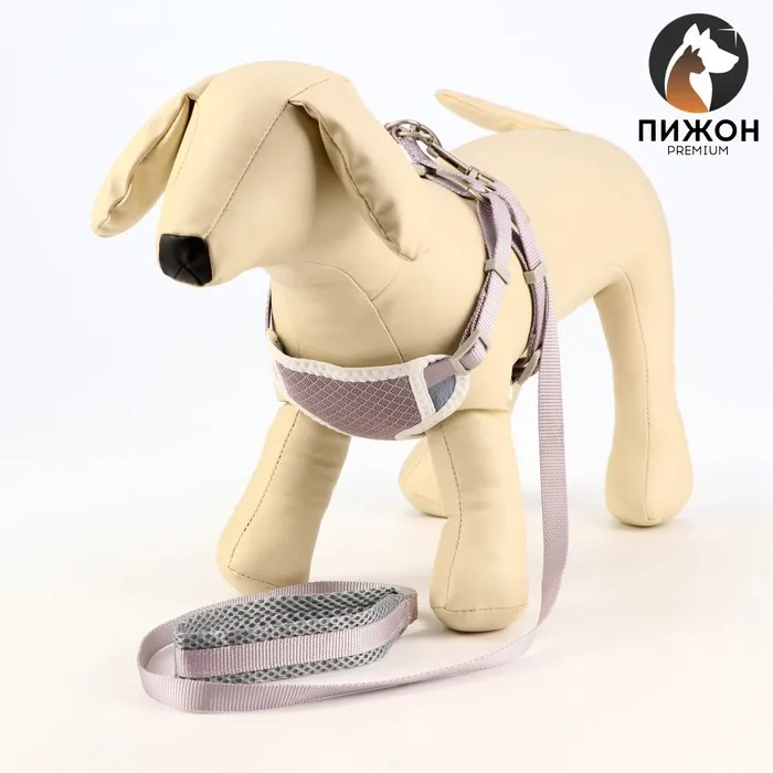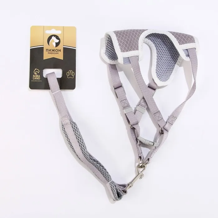 Комплект амуниции с мягкой шлейкой, M, поводок 120 х 1,5 см, ОШ 26-48 см, ОГ 26-48 см, серый