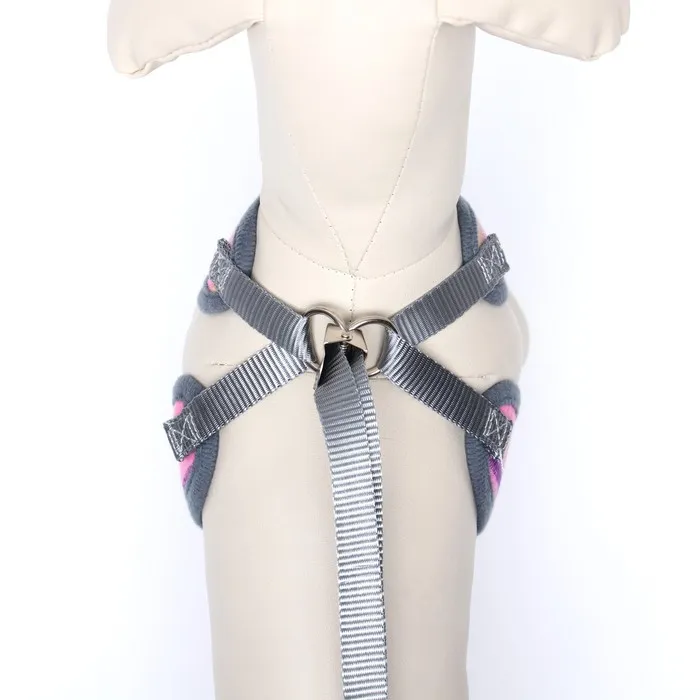 Комплект амуниции с мягкой шлейкой – это стильный и функциональный аксессуар для вашего питомца, созданный с учетом его комфорта и безопасности. Шлейка выполнена в ярком розовом цвете, который не только привлекает внимание, но и делает собаку заметной во время прогулок.