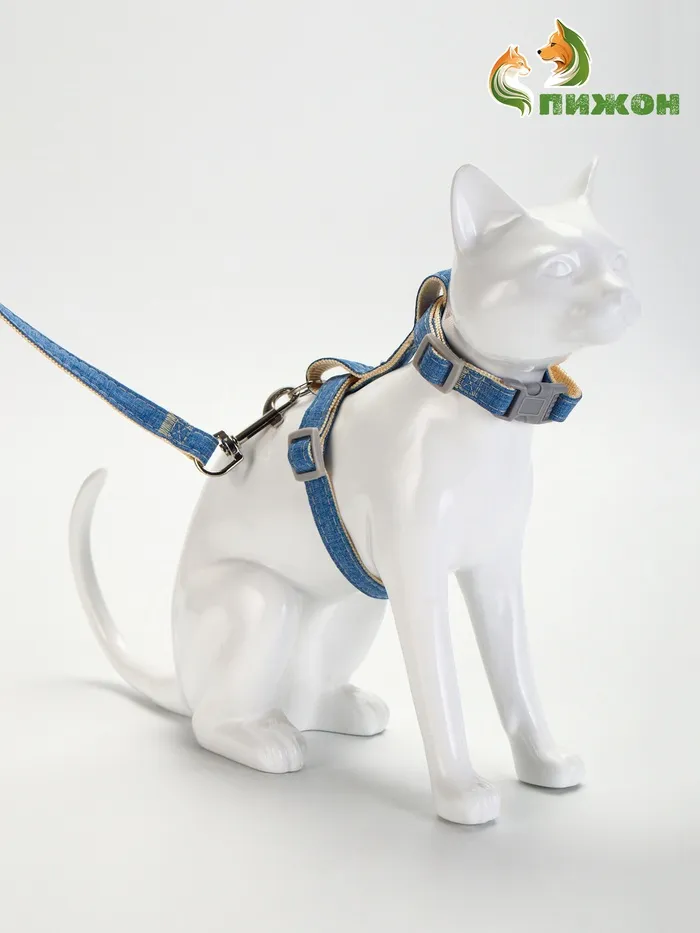 Комплект амуниции "Жаккард", поводок 120 х 1,5 см, синий — Характеристики
