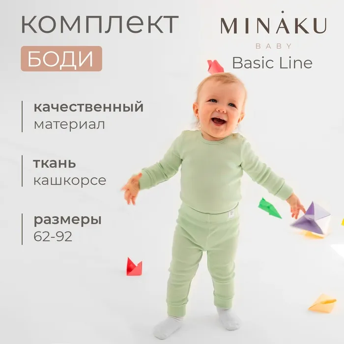 Комплект боди детских MINAKU: Basic Line BABY, цвет шалфей/бежевый, рост 62-68 — Характеристики