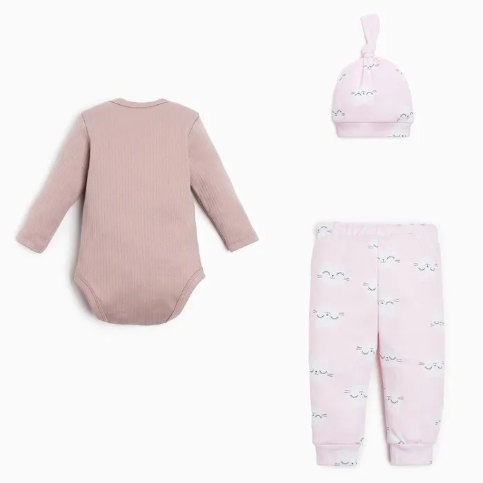 Комплект: боди, шапочка и брюки Крошка Я «Киса», рост 68-74 см