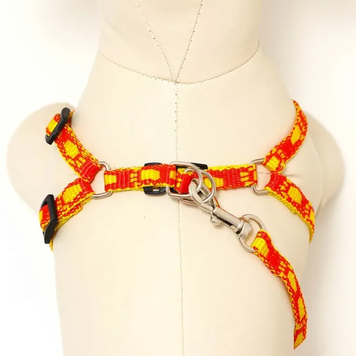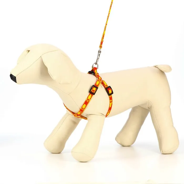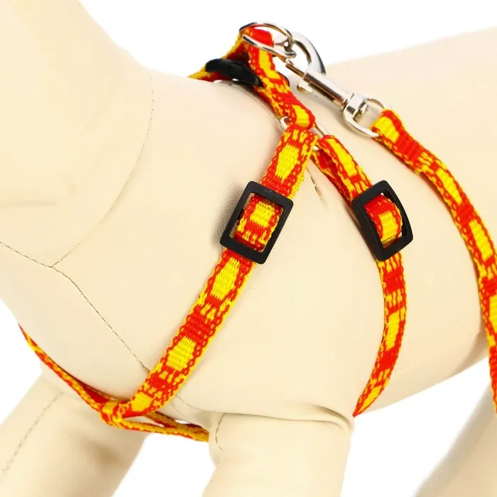 Комплект "Большая лапа", ширина 1 см, поводок 120 см, шлейка 25-36 см, оранжево-жёлтый — Характеристики