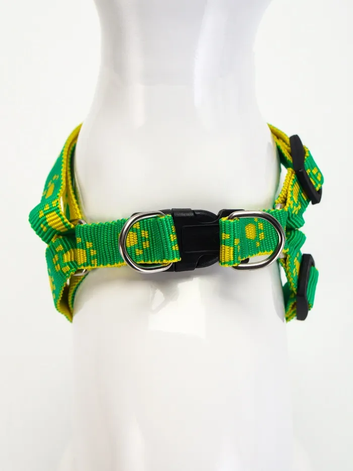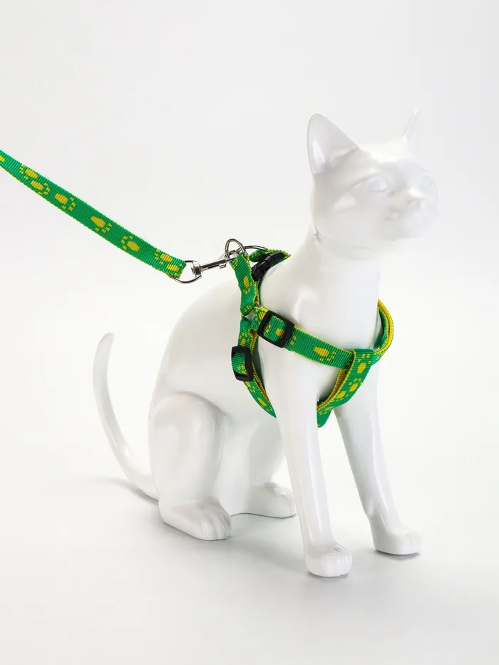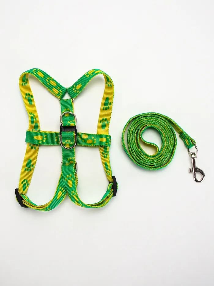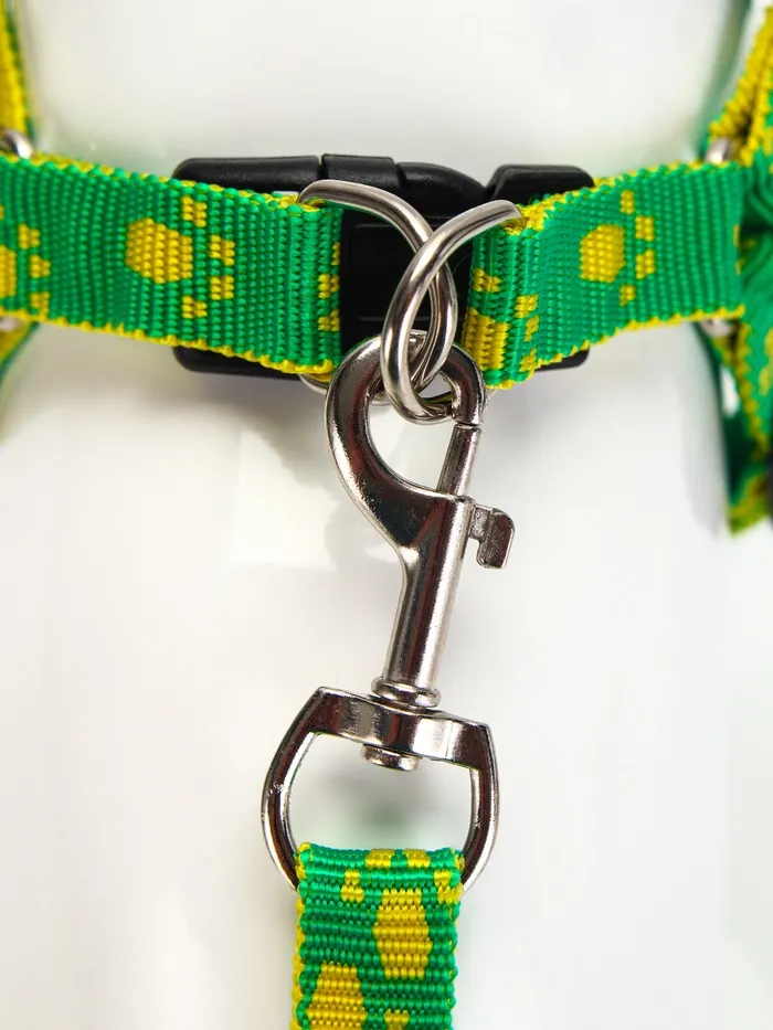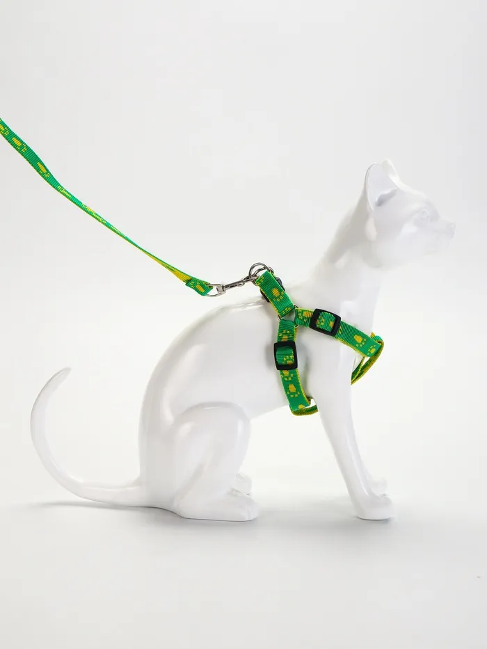 Комплект "Большая лапа", ширина 1,5 см, поводок 120 см, шлейка 28-42 см, жёлто-зелёный — Характеристики