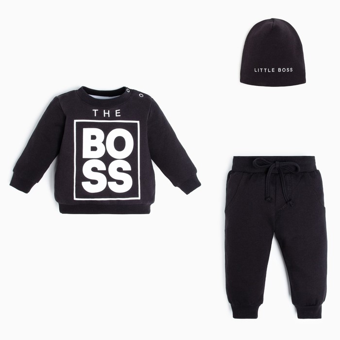Комплект детский (джемпер, брюки, шапочка) Крошка Я "Little Boss", рост 62-68 см, цвет чёрный — Характеристики