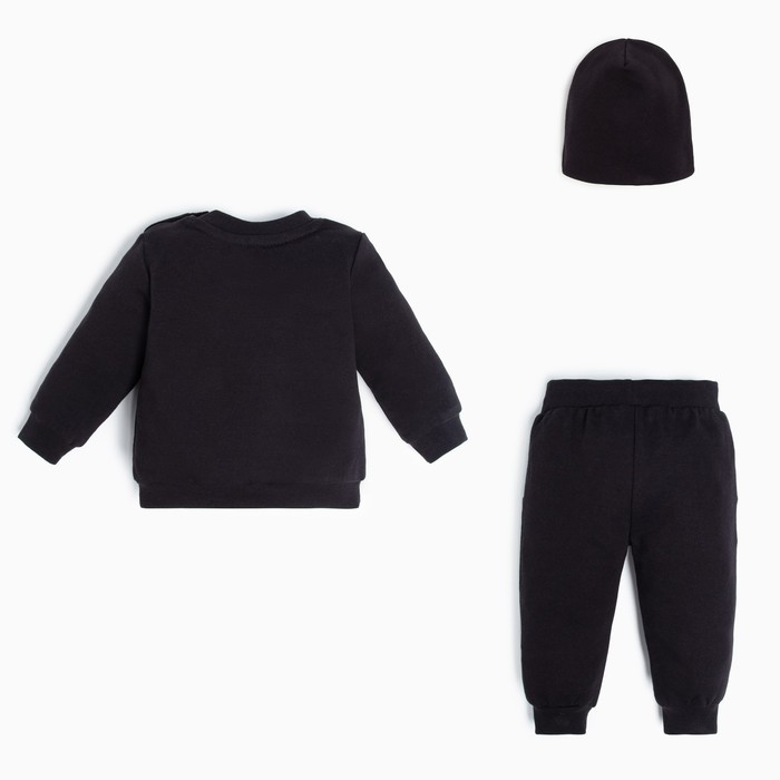 Комплект детский (джемпер, брюки, шапочка) Крошка Я "Little Boss", рост 86-92 см, цвет чёрный — Характеристики