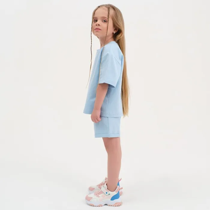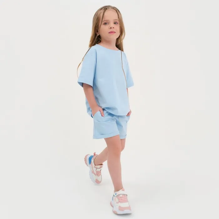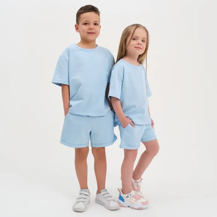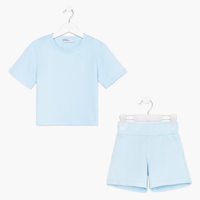 Комплект детский (футболка, шорты) KAFTAN Basic line, размер 34 (122-128 см), голубой — Характеристики