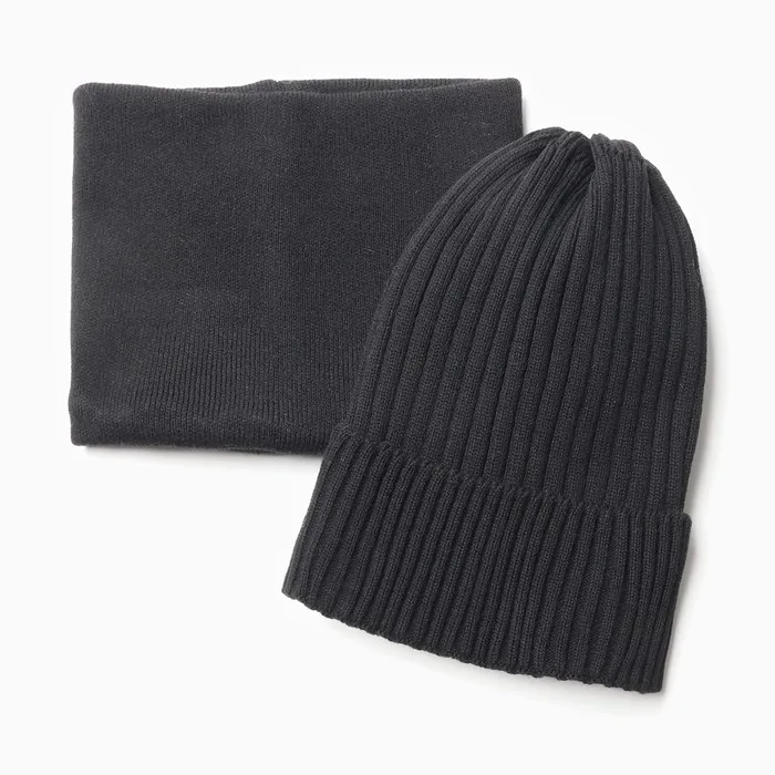 Комплект детский (шапка, снуд), цвет черный, размер 48-52