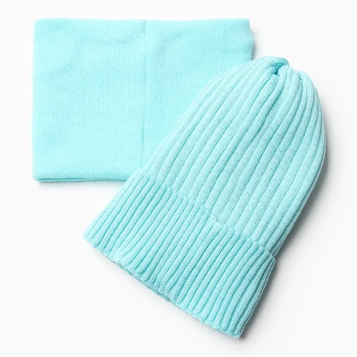 Комплект детский (шапка, снуд), цвет мятный, размер 48-52