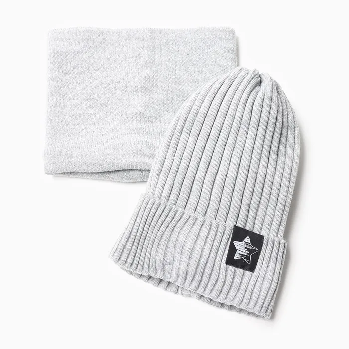 Комплект детский (шапка, снуд), цвет серый, размер 52-56