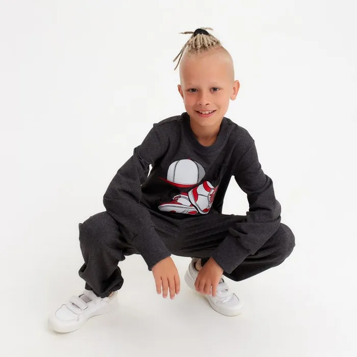 Комплект детский (свитшот, брюки) MINAKU: Casual Collection, антрацит, рост 128 см — Характеристики