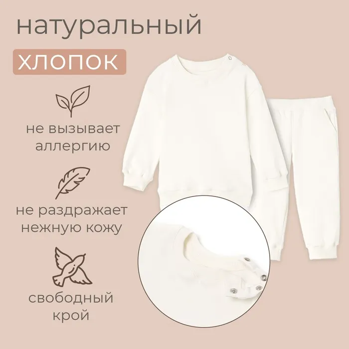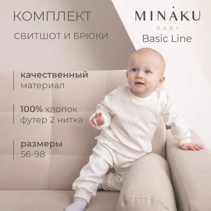 Комплект детский (свитшот, брюки) MINAKU, рост 74-80 см, экрю — Характеристики