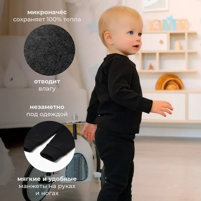 Комплект детский термо (джемпер, брюки) MINAKU, цвет черный, рост 80-86 см — Характеристики