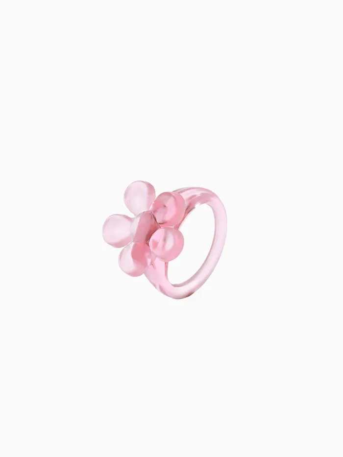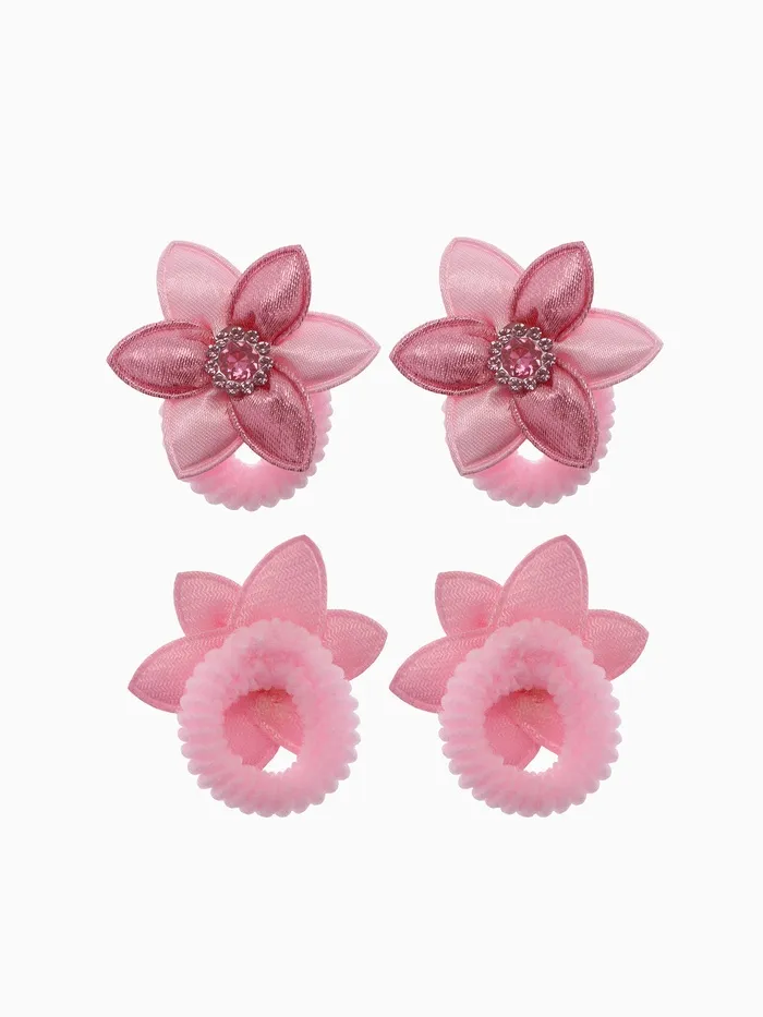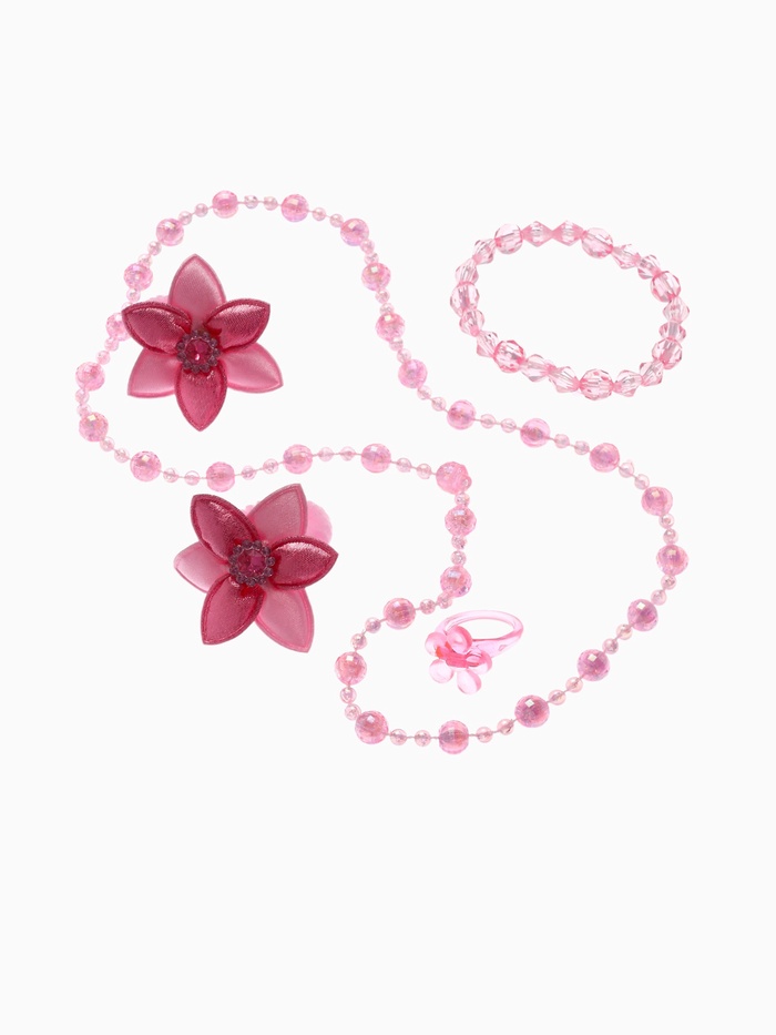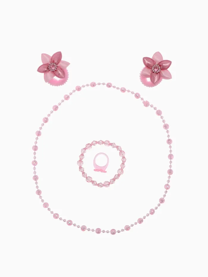 Комплект детский «Выбражулька» 5 предметов: 2 резинки, бусы, браслет d=4,6 см., кольцо, цветочек, розовый