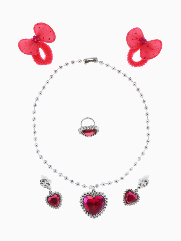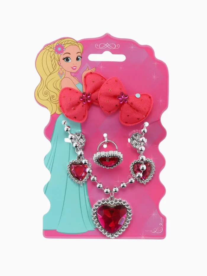 Комплект детский «Выбражулька» 5 предметов: 2 резинки, клипсы, кулон, кольцо, цвет малиновый — Характеристики