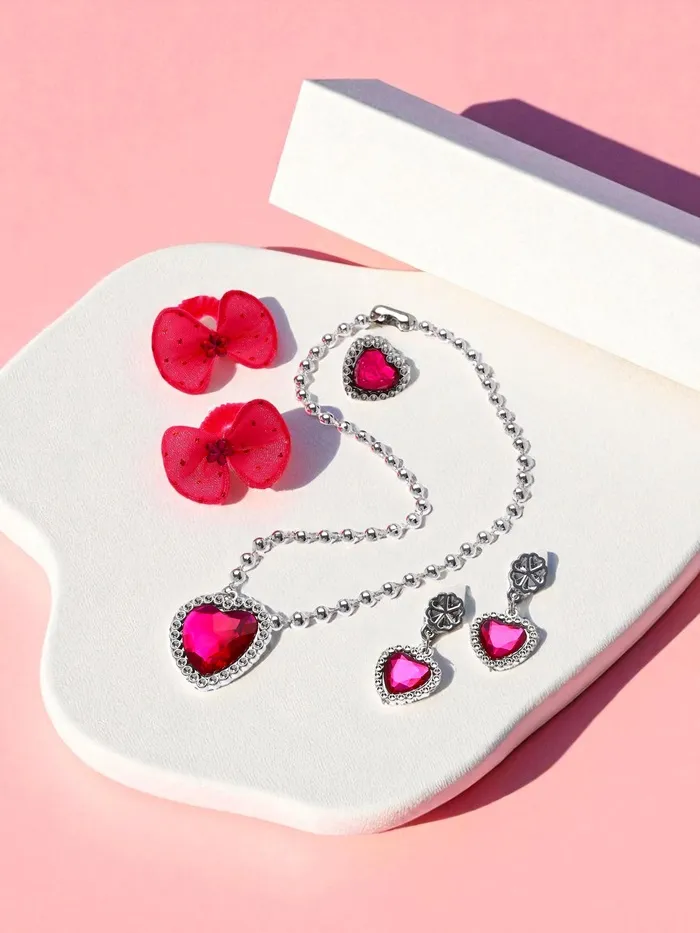 Комплект детский «Выбражулька» 5 предметов: 2 резинки, клипсы, кулон, кольцо, цвет малиновый