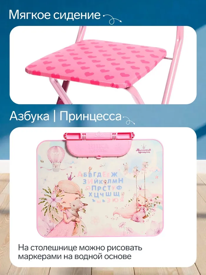 Развитие с комфортом: Личное рабочее пространство способствует развитию самостоятельности у ребенка. Комплект «Маленькая принцесса» - прекрасный выбор для девочек от 3 лет, создающий особую атмосферу для творчества и обучения. Подарите своей принцессе ее собственный уголок!
