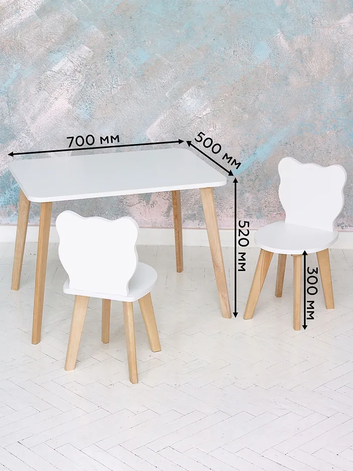Комплект детской мебели «Мишка»: стол и 2 стула, МДФ белый/дерево/ЛДСП — Характеристики