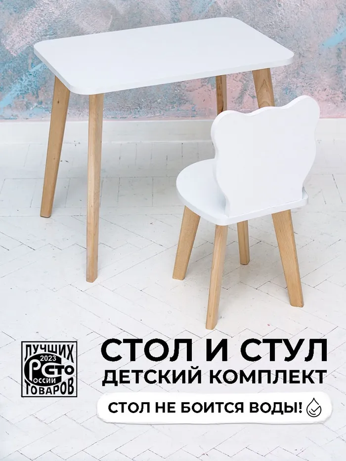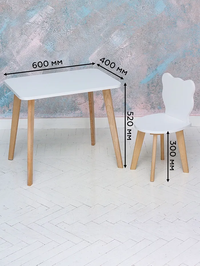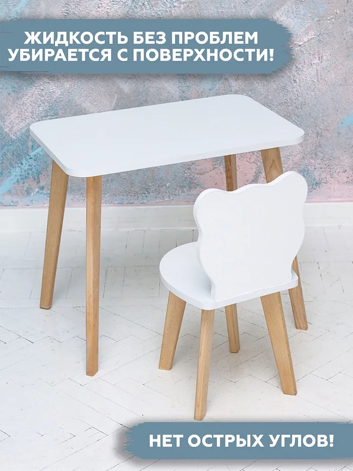 Комплект детской мебели «Мишка»: стол и стул, МДФ белый/дерево/ЛДСП — Характеристики