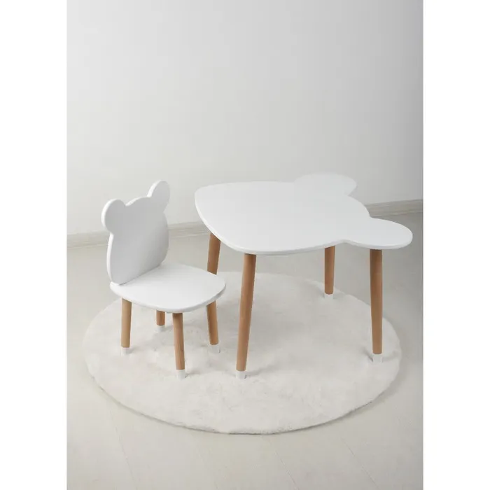 - Стильный дизайн: лаконичная белая расцветка и звездный декор на спинке стула делают набор настоящим украшением детской комнаты.