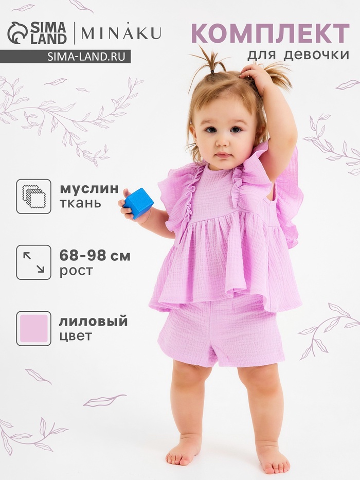 Комплект для девочки (блузка, шорты) MINAKU, лиловый, рост 68-74 см — Характеристики