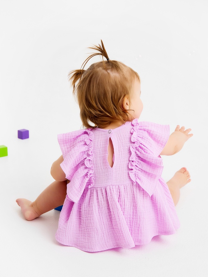 - Стильный дизайн. Нежный лиловый цвет и модный крой делают комплект очаровательным.