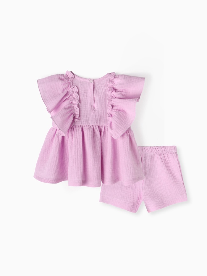 - Стильный дизайн. Нежный лиловый цвет и модный крой делают комплект очаровательным.