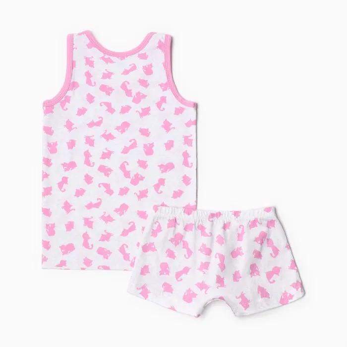 Комплект для девочки (майка, трусы), цвет серый меланж/котики, рост 110 см