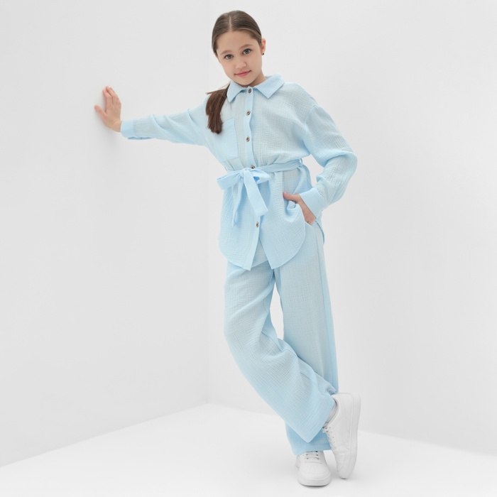 Комплект для девочки (рубашка и брюки) MINAKU, голубой, рост 116 см — Характеристики