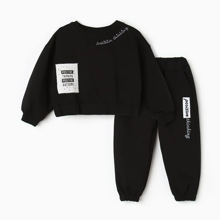 Комплект для девочки (свитшот, брюки), цвет чёрный, рост 104 см — Характеристики