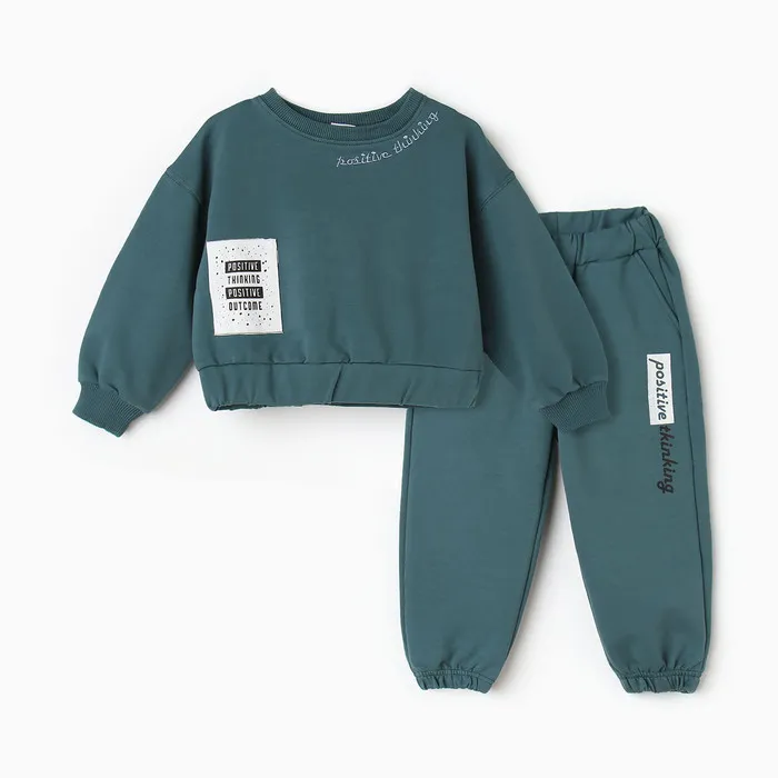 Комплект для девочки (свитшот, брюки), цвет тёмно-зелёный, рост 110 см — Характеристики