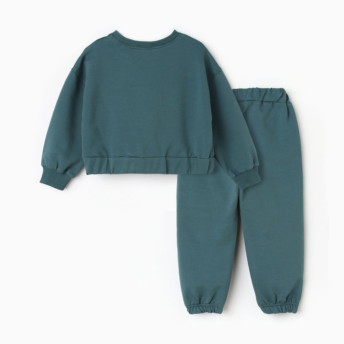 Комплект для девочки (свитшот, брюки), цвет тёмно-зелёный, рост 122 см — Характеристики