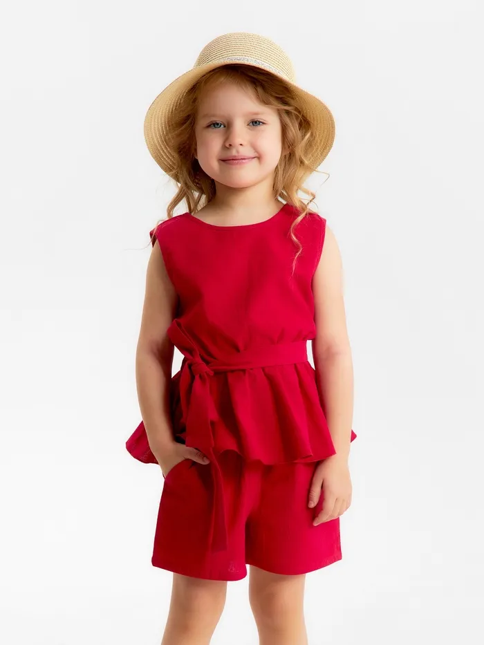 Комплект для девочки (топ и шорты) KAFTAN, размер 38 (146-152 см), красный — Характеристики
