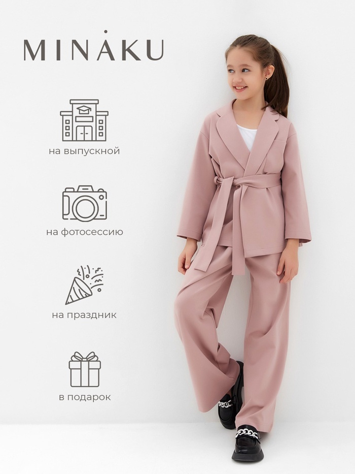 Комплект для девочки (жакет и брюки) MINAKU: PartyDress, пыльно-розовый, рост 128 см — Характеристики