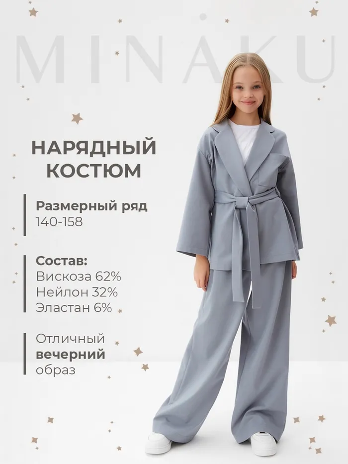 Комплект для девочки (жакет и брюки) MINAKU: PartyDress, серо-голубой, рост 152 см — Характеристики
