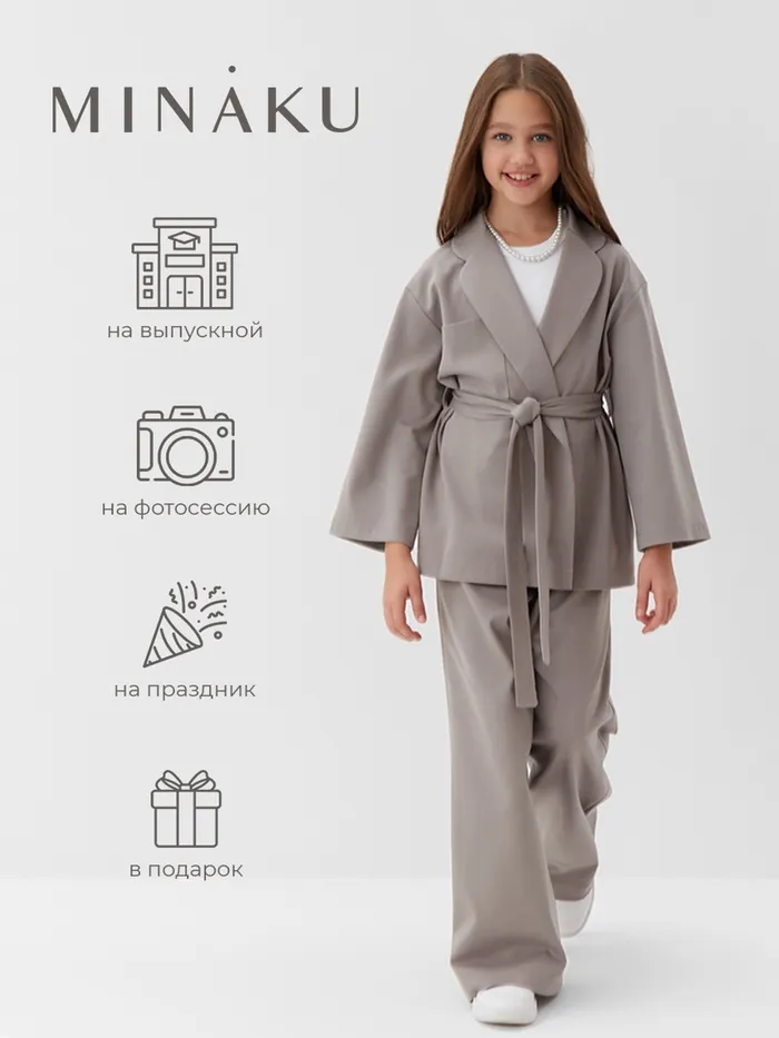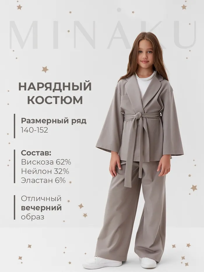 Комплект для девочки (жакет и брюки) MINAKU: PartyDress, серый, рост 140 см — Характеристики