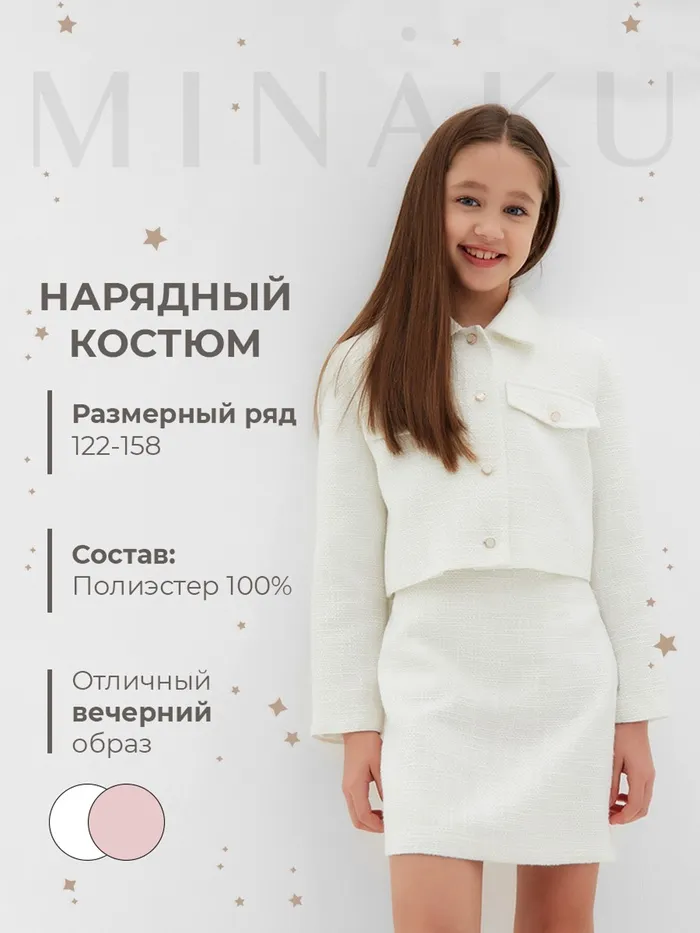 Комплект для девочки (жакет и юбка) MINAKU: PartyDress, белый, рост 128 см — Характеристики