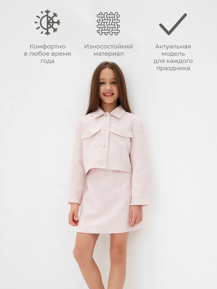 Комплект для девочки (жакет и юбка) MINAKU: PartyDress, розовый, рост 122 см — Характеристики