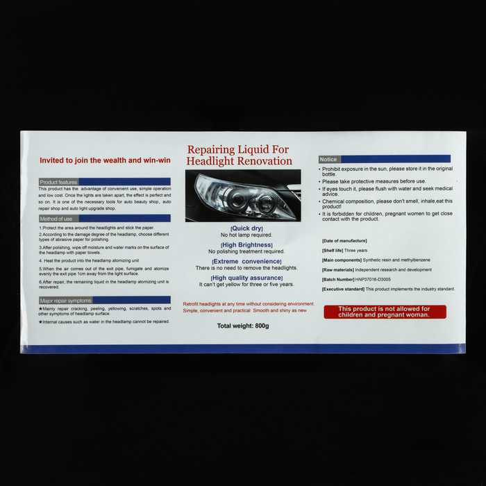 Комплект для химической полировки фар автомобиля предназначен для восстановления прозрачности пластиковых фар. В комплект входят все необходимые материалы и инструменты для проведения процедуры полировки. Процесс полировки заключается в удалении помутнений и царапин с поверхности фары с помощью специальных химических составов. В результате фары приобретают свою первоначальную прозрачность и яркость света. Комплект подходит для самостоятельного использования и может быть использован для восстановления фар любого автомобиля.