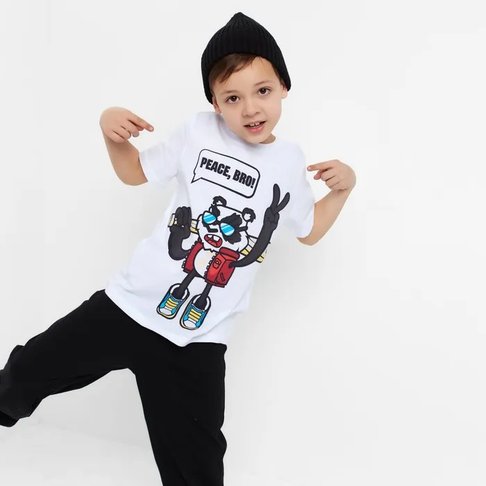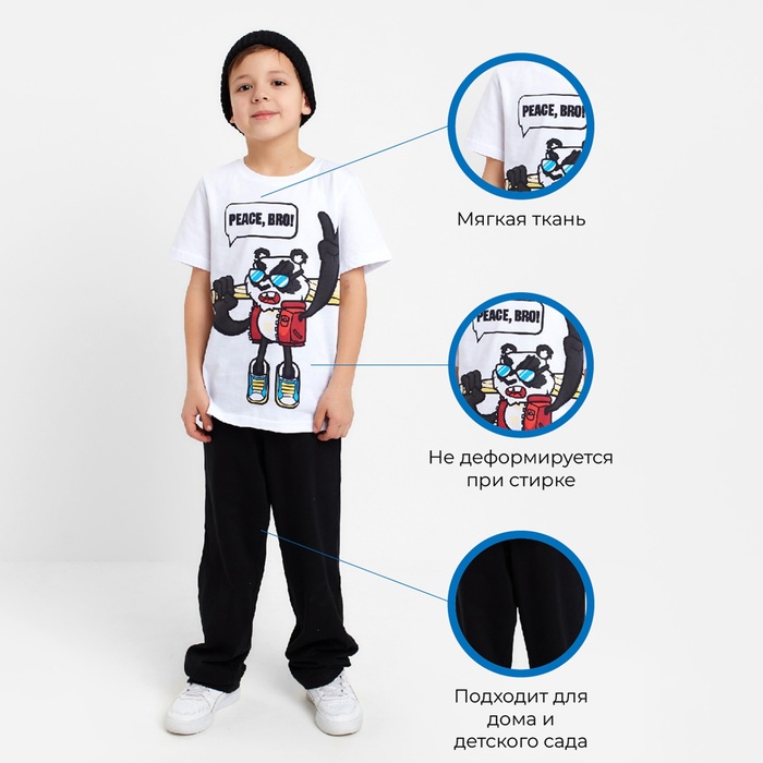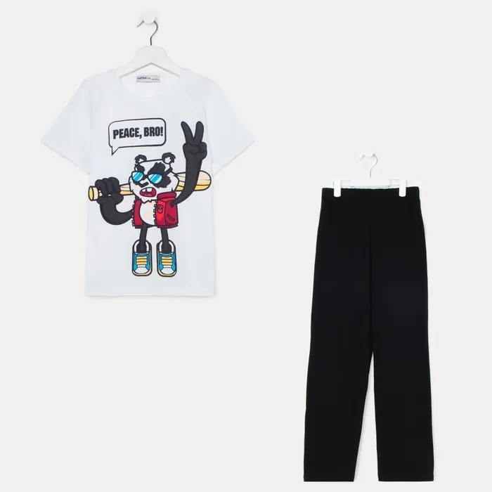Комплект для мальчика (футболка, брюки) KAFTAN "Hype", рост 146-152, цвет белый/чёрный — Характеристики