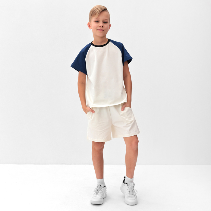 Комплект для мальчика (футболка и шорты) MINAKU, цвет экрю, синий, рост 134 см — Характеристики